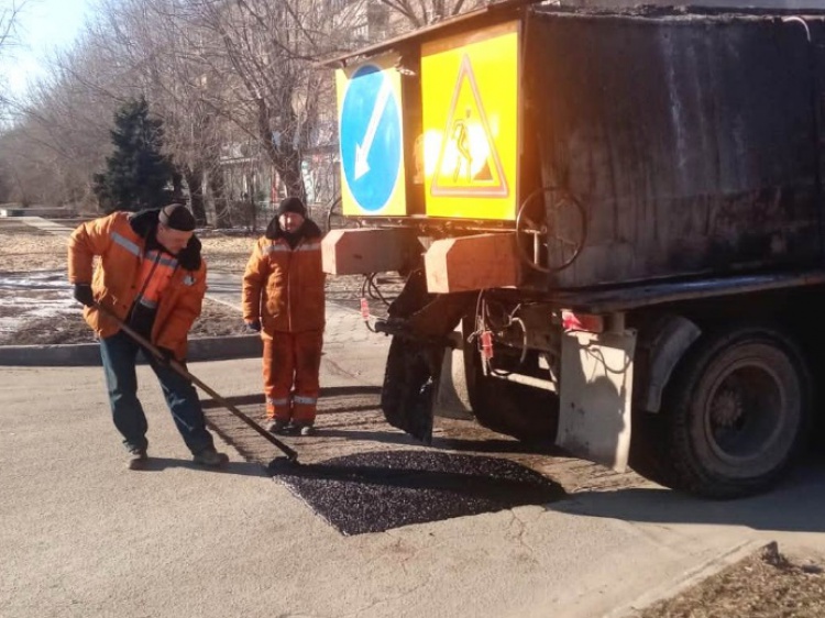 В Волжском специалисты МБУ «Комбинат благоустройства» продолжают ремонтировать дороги литым асфальтобетоном.