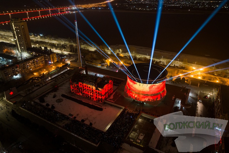 Как рассказали Волжский.ру в пресс-службе региональной администрации, основой стали Аллея Героев, железнодорожный вокзал «Волгоград-1», музей-панорама «Сталинградская битва», руины мельницы Гергардта. Одновременно с визуальным оформлением на больших светодиодных экранах показывали фотографии участников Сталинградской битвы, которые прислали потомки защитников Отечества со всех регионов страны, ближнего и дальнего зарубежья.