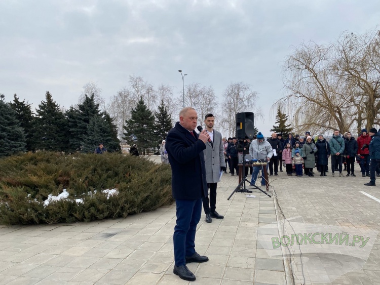 Перед волжанами выступил глава города Игорь Воронин, который отметил героизм и мужество солдат и простых людей, которые под огнём собирали танки, лечили раненых и шли на подмогу на передовую.