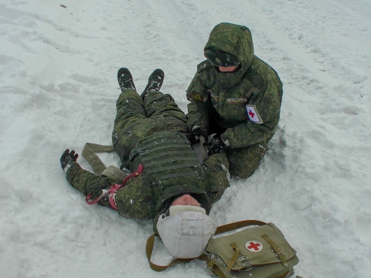 Медики должны были на скорость подползти к раненому, наложить жгут и оттащить бойца из-под обстрела в укрытие, где уже могла быть оказана медпомощь. Действия военных оценивали специалисты медицинской роты и офицеры медслужбы.