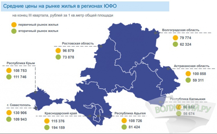 При этом цены на жилье в Волгоградской области ощутимо ниже, чем в большинстве других регионов ЮФО. Доступнее квартиры только в Астраханской области и Калмыкии.