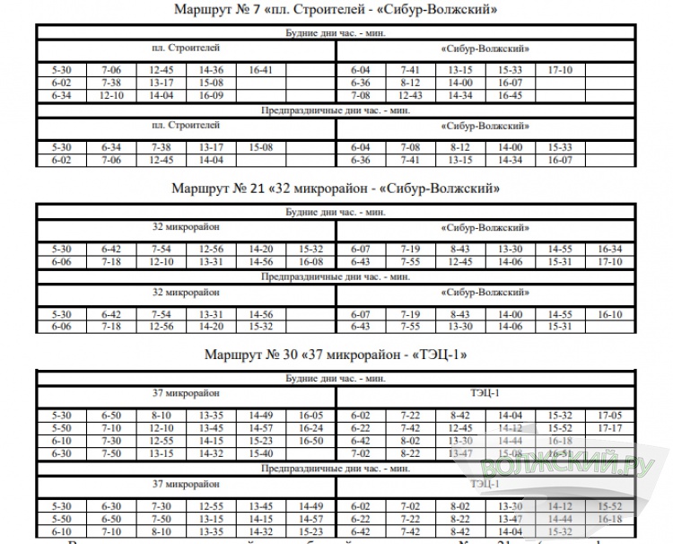 При этом автобусы № 7 «Площадь Строителей - «Сибур-Волжский», № 21 «32 микрорайон – «Сибур-Волжский» и № 30 «37 микрорайон – «ТЭЦ-1» будут ходить без изменений.