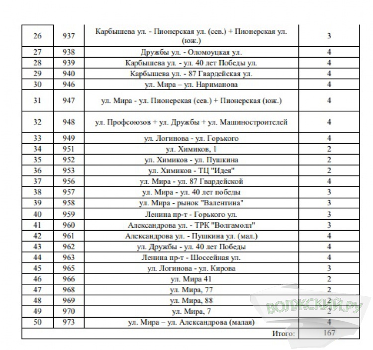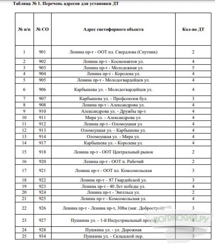 Датчики установят по 50 адресам, в том числе на пересечении проспекта им. Ленина с улицами им. Космонавтов, Молодёжной, Академика Королёва, Молодогвардейцев, Оломоуцкой, Александрова, улицы им. генерала Карбышева с бульваром Профсоюзов, улиц Мира и Александрова и других. Также в списке остановки общественного транспорта на проспекте им. Ленина: на площади Свердлова, п. Рабочий, Центральный рынок.