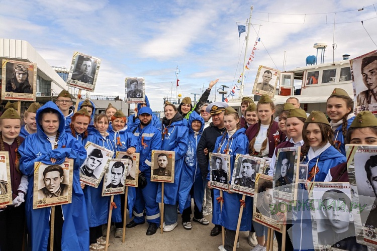 После парада колонна людей с портретами своих дедов и прадедов по Аллее Героев двинулась к Волге. У причала на верхней террасе набережной их ждала эскадра теплоходов «Река бессмертного полка». Суда с закрепленными на бортах портретами участников войны двинулись вверх по Волге. У мемориального комплекса «Бронекатер БК-31» эскадра поприветствовала зрителей на берегу протяжными гудками.