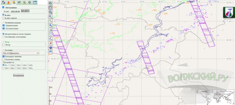 Как сообщили Волжский.ру в комитете природных ресурсов, лесного хозяйства и экологии, для мониторинга используют программу, разработанную научно-исследовательским центром космической гидрометеорологии «Планета». Система в режиме онлайн регистрирует электромагнитное излучение молниевых разрядов, а программа вычисляет вероятность возникновения пожаров с точностью 99%, а места – до 300 метров.