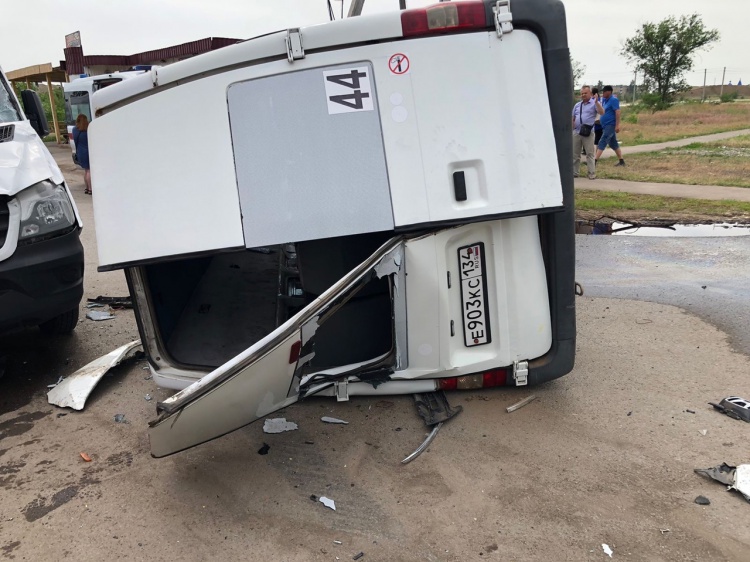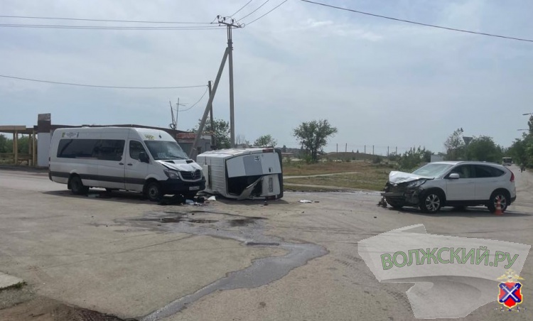 Дополнение: по данным ГУ МВД по Волгоградской области, 37-летняя женщина-водитель за рулём «Honda CR-V» на нерегулируемом перекрестке с улицей Ташкентской не уступила дорогу и совершила столкновение с движущимся по главной дороге маршрутным транспортным средством «Ford 222702», которое от удара опрокинулось на левый бок, после чегостолкнулось со стоящим на перекрестке «Меrsedes-22360С» .