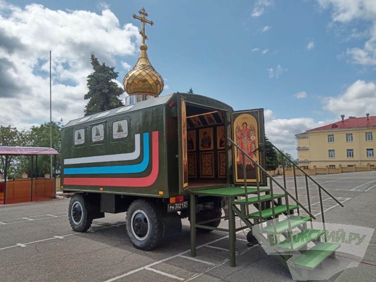 Как рассказали Волжский.ру в пресс-службе Южного военного округа, его построили силами личного состава соединения – компактное сооружение под куполом базируется на двухосном прицепе. Купол с крестами и иконы изготовили мастера из Волгодонска и Саратова.