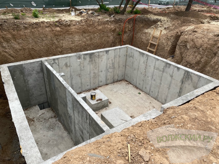 Полностью возведены стены и перегородки насосной станции, в настоящее время сооружение покрывают слоем гидроизоляции.