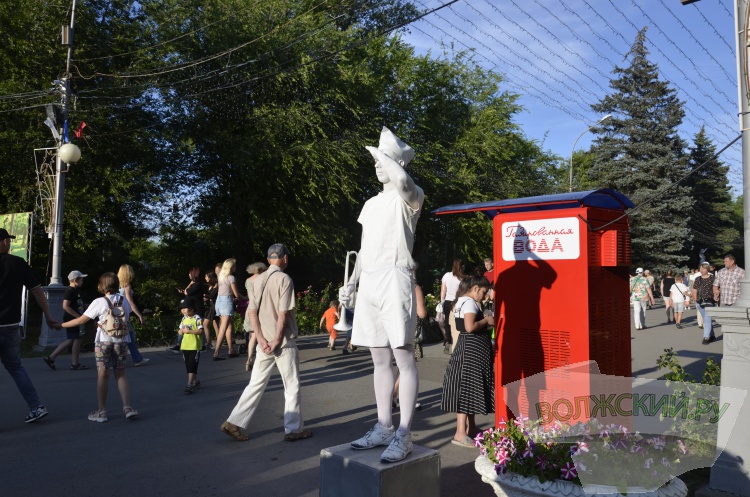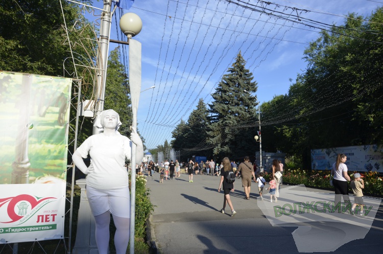 Мероприятия по случаю юбилея проходили одновременно на нескольких площадках. У центрального входа волжан встречала выставка ретро-автомобилей, на аллее с фонтанами – ожившие скульптуры пионеров, в ротонде – фотобудка, а на летней сцене – духовой оркестр. Волжане фотографировались, веселились и танцевали.
