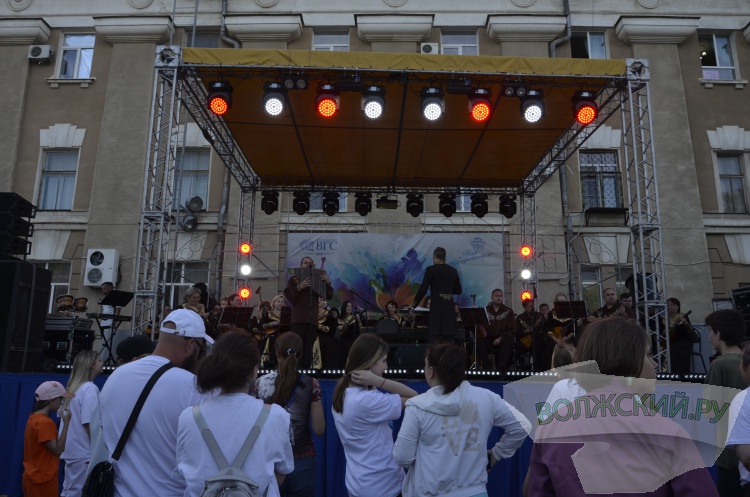 На центральной сцене выступал волжский русский народный оркестр, который порадовал слушателей классическими произведениями, попурри различных жанров и эпох, мелодиями из кинофильмов и хиты рок-исполнителей. Последние вызвали наибольший отклик у собравшейся публики: горожане подпевали, танцевали и записывали номера на телефоны.