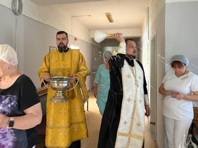 В совместной молитве приняли участие медицинский персонал и пациенты. По окончании службы священнослужители окропили помещения и больничные палаты святой водой.