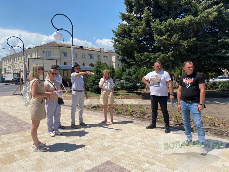По традиции, волжане сначала проверили ход работ на площади Комсомольской, готовность которой приближается к 100%, о чем свидетельствует убранный забор. Здесь уже полностью готовы все дорожки и система полива, а также установили 20 больших и 12 малых опор освещения. Однако освещение пока не подключили, подрядчик обещал заняться вопросом в ближайшие дни. Кроме этого, контролёры вновь обратили внимание на разноцветные столбы вокруг площади. Их планируют перекрасить в единый цвет.