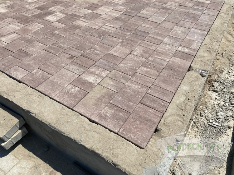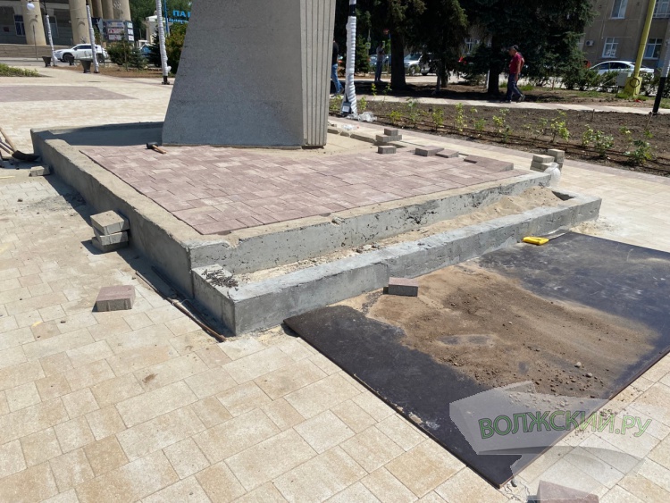 В это же время рабочие завершают укладку брусчатки на основание стелы. В настоящее время обсуждается вопрос окраски боков и окантовки.