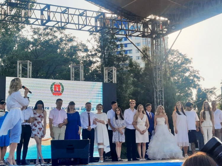 В ЦПКиО Волгограда состоялось первое в регионе массовое бракосочетание. Оно прошло в рамках «Семейного феста на Волге».