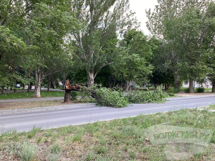 В Волгоградской области накануне из-за сильного ветра упало сухое дерево.