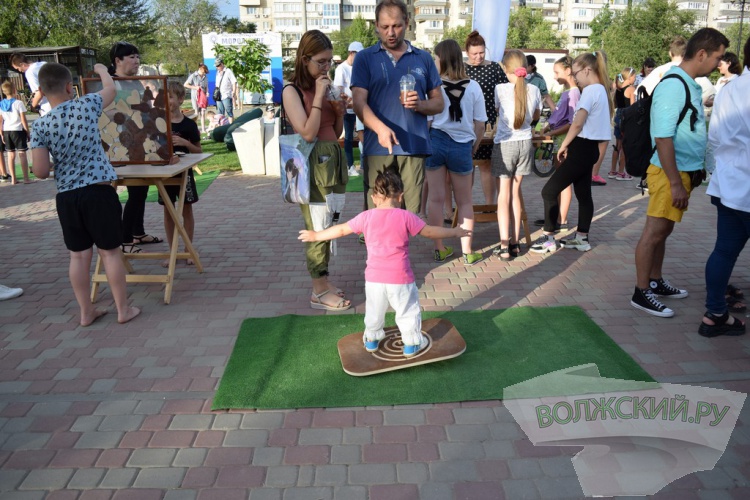 Здесь собрались жители новых микрорайонов и все неравнодушные к спорту волжане. В парке было много молодежи и семей с маленькими детьми. На аллеях парка расположились интерактивные площадки. Дети и взрослые могли попробовать себя в интеллектуальных и спортивных развлечениях и конкурсах.