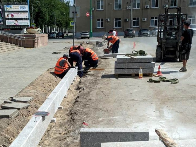 На площади Комсомольской обновляют участок протяженностью 245 м. Здесь установили новые гранитные бордюры. Дорожное полотно будет обновлено на площади порядка 6 тысяч м2. Данная дорога выбрана в целях комплексного обновления территории в связи с благоустройством сквера в рамках ФКГС.