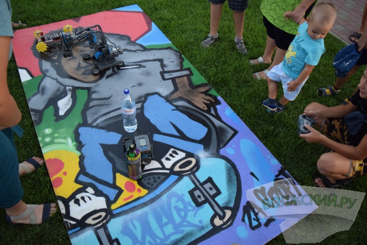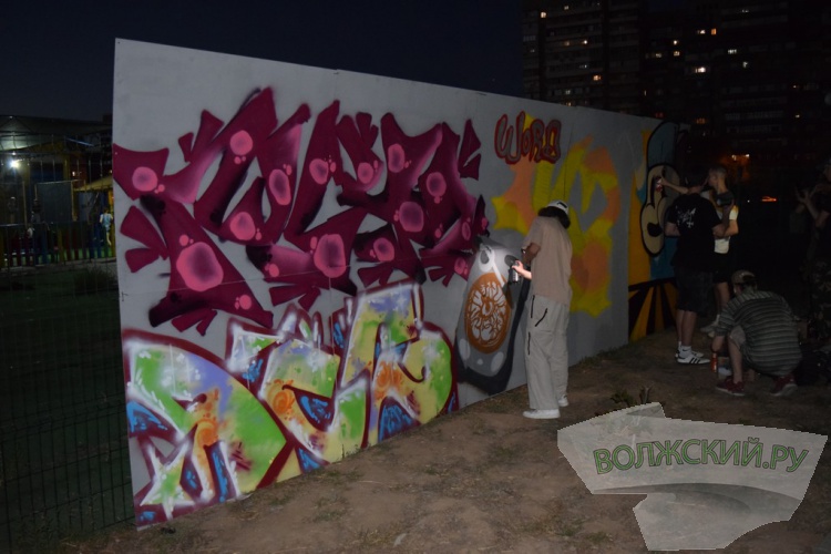 Для любителей граффити смонтировали специальное панно, где ребята могли самовыразиться. Они до темноты упражнялись в искусстве нанесения фигурных надписей, в конечном итоге полностью заполнив панно. Здесь, в том числе, собрались молодые граффити-художники, принимавшие участие в росписи арок дома по проспекту им. Ленина, 97. Художники признались, что искусство владения баллончиком с краской не так просто как может показаться на первый взгляд. Здесь, так как в классической живописи, существуют различные техники нанесения краски. Граффитист применяет различные инструменты и учится контролировать струю краски, которая идет под давлением. При этом ребята признались, что люди не всегда понимают их творчество, но признания они и не ждут.