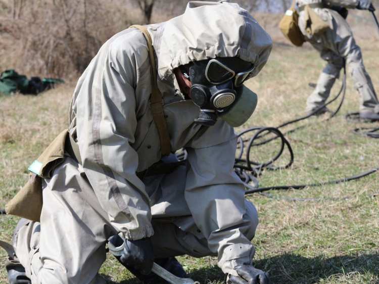В Волгоградской области на полигоне Прудбой продолжаются учения специалистов войск радиационной, химической и биологической защиты.