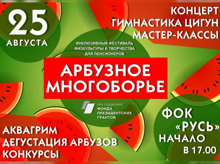 В пятницу, 25 августа, в Волжском пройдёт «вкусный праздник» – инклюзивный фестиваль физкультуры и творчества для пенсионеров «Арбузное многоборье» (0+).