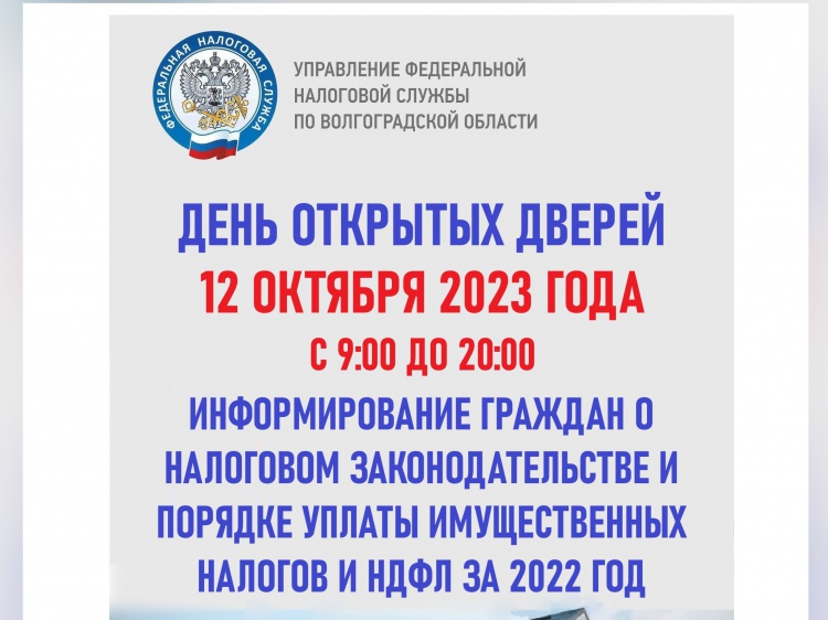 12 октября 2023 года с 9.00 до 20.00 во всех инспекциях Волгоградской области пройдут Дни открытых дверей для налогоплательщиков – физических лиц!