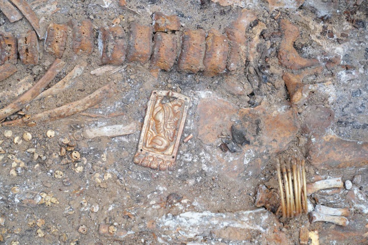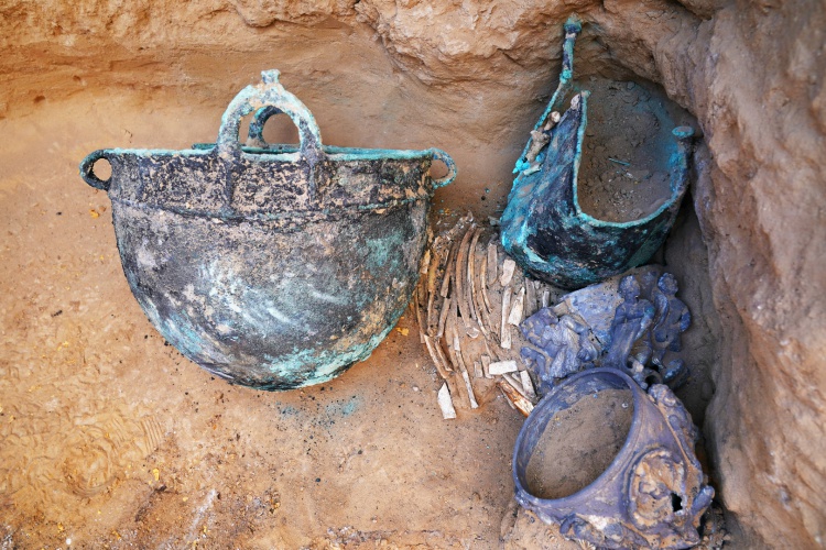В ходе раскопок археологи «Волгоградского областного научно-производственного центра по охране памятников истории и культуры» обнаружили три погребения раннесарматского времени, которые датируются вторым веком до нашей эры. В уцелевших захоронениях найдены останки трех человек – двух взрослых мужчин-воинов и подростка в возрасте 5-7 лет. Об их высоком воинском ранге и знатном происхождении говорит многочисленный погребальный инвентарь. Среди находок – золотые браслеты, гривны, пряжки, многочисленные бляшки, украшавшие одежду и головные уборы, парадные железные мечи в золотых ножнах, колчанные наборы с железными стрелами, железные копья, железный шлем, серебряные канфары с греческой надписью, золотые ритоны, бронзовые котлы, глиняный кувшин с зооморфными ручками и бронзовые зеркала.