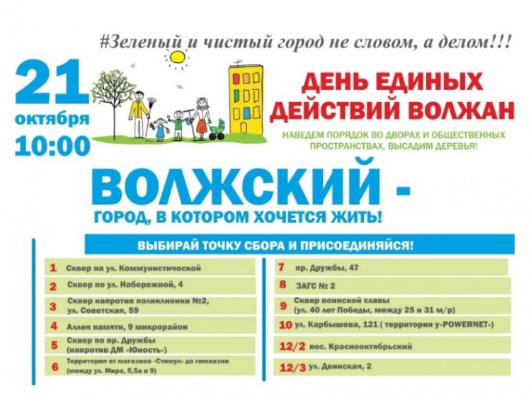 В субботу, 21 октября, в Волжском проведут традиционную общегородскую акцию «День единых действий».