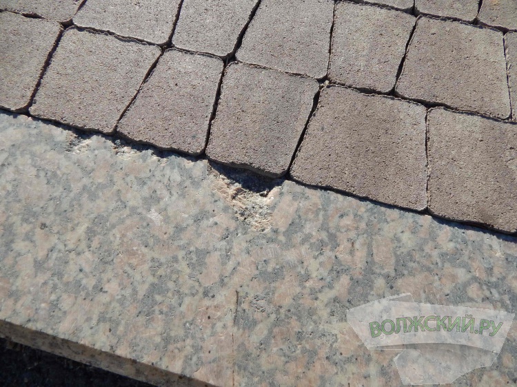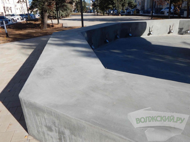 Площадь Комсомольскую подрядчик сдал первой еще летом, и в сентябре Волжский.ру уже прогулялся по ней (подробнее...). С тех пор здесь появился питьевой фонтанчик и суслики, к установке которых при этом уже возникли вопросы у первостроителей. Зверьков, хоть и симпатичных, в буквальном смысле «насадили» на памятники. Ещё в глаза бросились сколы по периметру основания стелы, в чем уже успели обвинить самокатчиков, а также выбоины в новом гранитном бордюре.