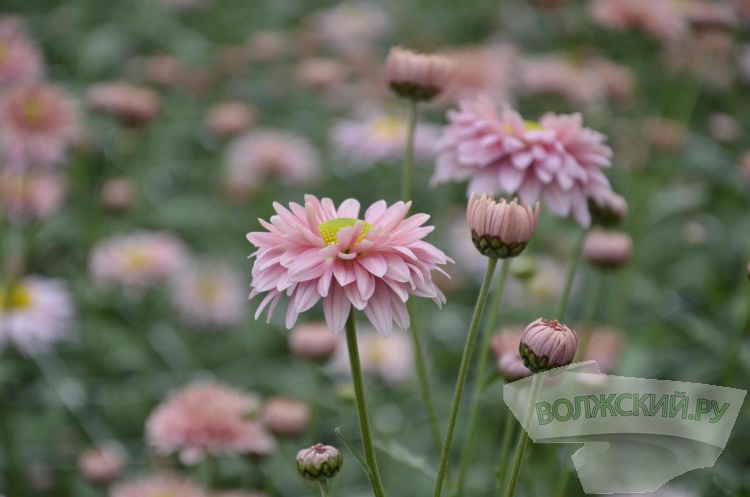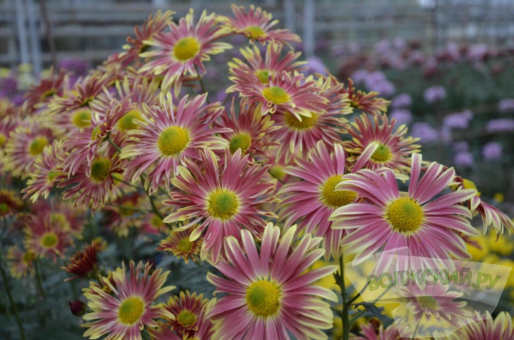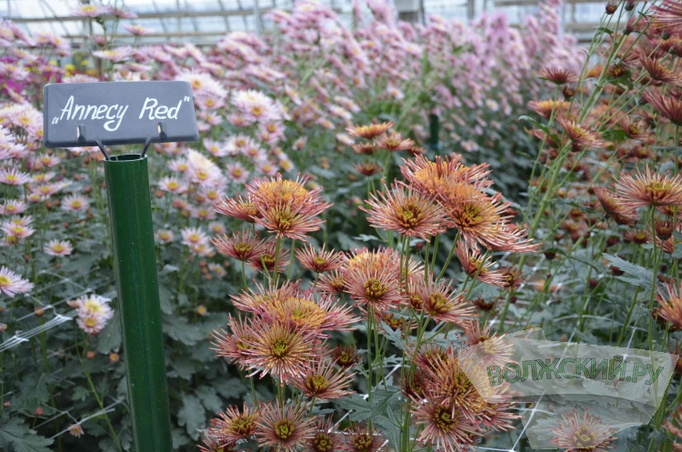 Мероприятие проходит под названием «Философия цвета». Грядки теплицы окрасились в желтые, сиреневые, бежевые, белые, рыжие, бордовые, красные, жемчужные, бронзовые и другие цвета. У одних растений ярко выраженная сердцевина, другие буквально укутаны лепестками будто помпоны зимних шапок, у третьих - бесчисленное множество лепестков, а следующие напоминают кучерявое солнышко с единичными лучиками. Волжан и волгоградцев встречает невысокая, но пышная «Медея сиреневая», ромашкоподобный темный насыщенный «Фиолент» и нежно розовая «Solo». От одних только названий разбегаются глаза: яркий «Красный октябрь», «Dance» с трубчатыми лепестками, «Седой король», «Greta», «Ksenia», «Anastasia», «Рязаночка», «Cassandra Bronz».