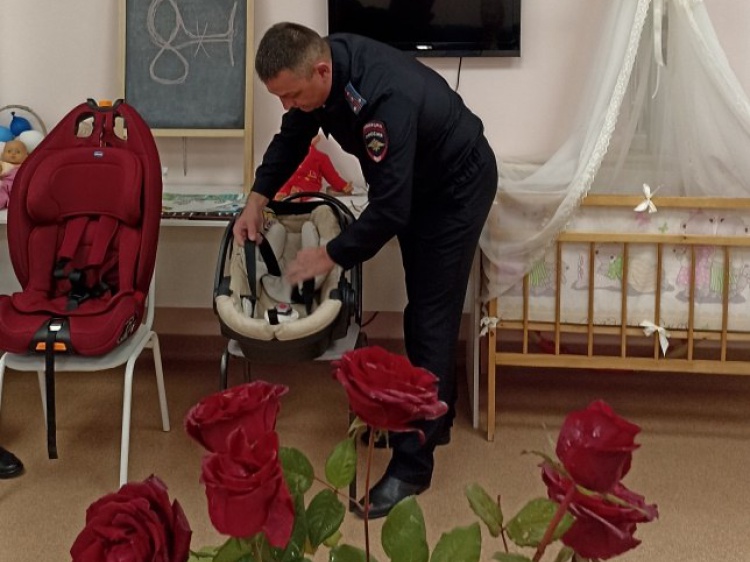 В преддверии Дня матери сотрудники ГИБДД наведались в женскую консультацию городской больницы им. Фишера.