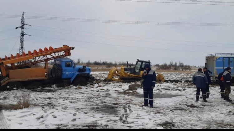 Одновременно с этим электрики монтируют новые опоры, погнувшиеся под тяжестью обледеневших проводов. Из Волгограда уже доставили металлические опоры, однако накануне при попытке доехать до опор ЛЭП техника увязла в грязи и снеге. В настоящее время, чтобы тяжелая техника добралась до места назначения, применяют некую специальную технологию. К работе уже привлекли бригады и машины из Ростовской, Пензенской и Московской областей.