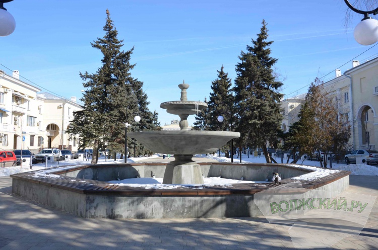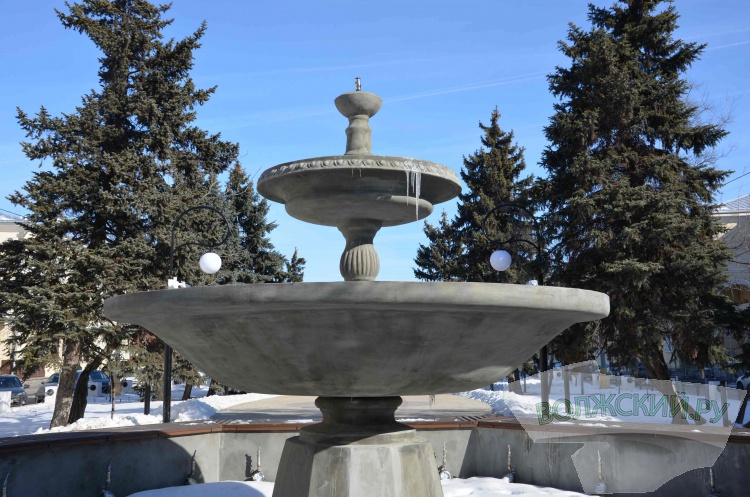 Центральный фонтан внешне пережил зиму успешно. Серые и будто недоделанные бортики спрятали под деревянным настилом, на котором можно сидеть. Вот только под ним всё так же виднеется «грязная» необработанная поверхность. А о наклоне чаши можно судить по скопившимся в одном месте сосулькам.