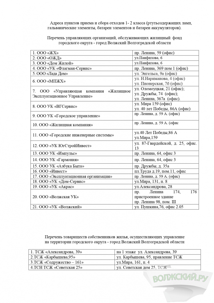 Заняться сбором опасных отходов управляющим компаниям и товариществам собственников жилья власти рекомендовали на совещании в феврале. Как сообщили Волжский.ру в городской администрации, список адресов нахождения таких пунктов в УК и ТСЖ опубликовали на официальном сайте мэрии в разделе информационных сообщений.