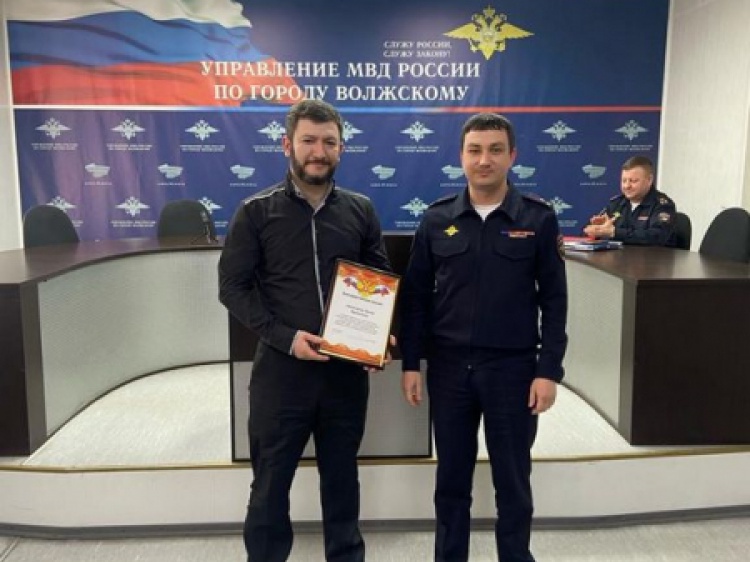 Начальник УМВД по городу Волжскому Дмитрий Дегтярев вручил благодарности двоим волжанам за проявленное неравнодушие и активную гражданскую позицию.