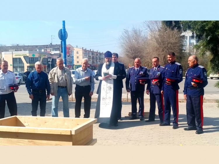 На днях на месте будущего монумента отслужили молебен пред началом «всякаго благого дела». Как сообщили Волжский.ру в пресс-службе Калачевской епархии, по благословению епископа Калачевского и Палласовского Иоанна службу провел настоятель храма преподобного Серафима Саровского, духовник ОКО «Волжский казачий округ» протоиерей Петр Симора. Вместе со священником молились заместитель атамана округа С.Е.Сигаев и казаки округа.
