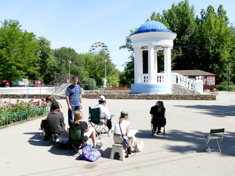 Замглавы Волжского Валентина Чурекова и председатель волжской гордумы Сергей Аксенов провели встречу с юными художниками-участниками пленэра в парке «Гидростроитель».
