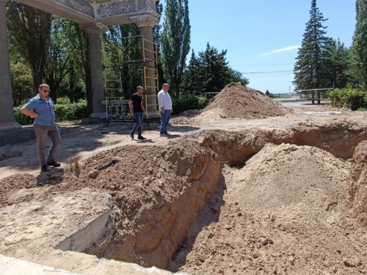Как сообщили Волжский.ру в городской администрации, подрядчики уже завершили работы по подготовке насосной станции – выполнили бетонирование помещения, вырыли траншеи под трубы. На фонтане демонтировали покрытия и борты, зачистили колонны, частично оштукатурили их первым слоем. Обустраивать фонтан рабочие начнут только после того, как оборудуют насосную станцию. На фонтане смонтируют 15 форсунок внутри чаши, где расположен тетраэдр, и переливной лоток по всему периметру на бортах и тетраэдре. Вода будет переливаться по основанию под тетраэдром, а также по бортам внутри, создавая видимость текущей стены. Чайка останется на тетраэдре, еще две чайки – на декоративных подставках внутри чаши.