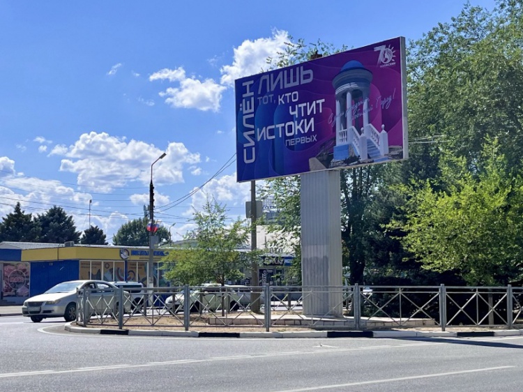 В Волжском начали монтировать баннеры с символикой 70-летия Волжского. Они выполнены в единой стилистике на основе «бренд-бука» к юбилею.