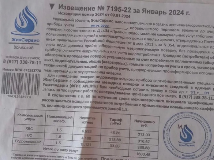 Жителей Волжского предупреждают о рассылке уведомлений о необходимости проведения метрологической поверки индивидуальных приборов учета.