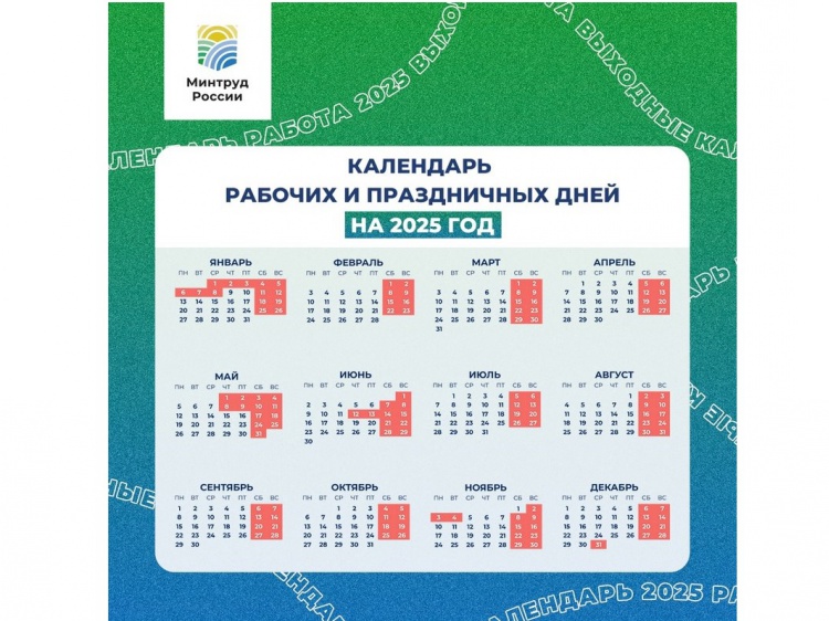 Минтруд представил проект о переносе выходных дней и календаре праздников на 2025 год.