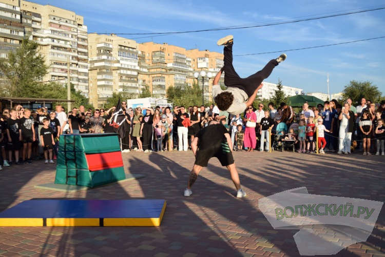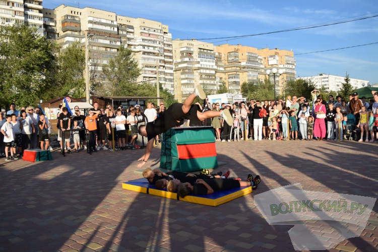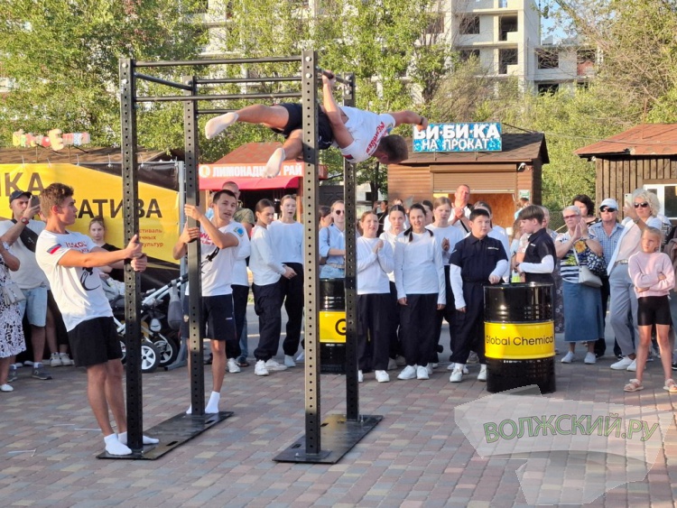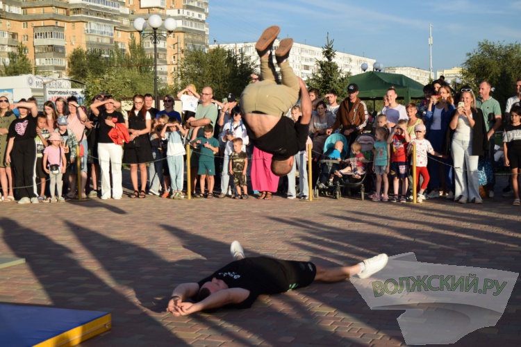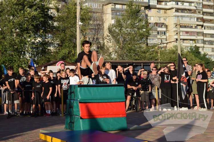 Затем на площадке перед сценой состоялось паркур-шоу от участника Российской ассоциации паркура и лидера этого направления в Волгоградской области Сергея Калиниченко. Его воспитанники демонстрировали трюки на матах, прыгали через препятствия и друг друга, крутились на турниках. После выступления на специально подготовленной площадке парка состоялись открытые состязания юных трейсеров.