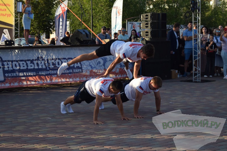 Программу продолжили показательные выступления от участников сборной России по воздушно-силовой атлетике, победителей чемпионата и Кубка России Асхата Машаева, Тимура Пчелинцева и Сергея Гуменюка из Саратова. Гости продемонстрировали собравшимся силовые упражнения и просто невероятные навыки владения собственным телом, чем вызвали всеобщий восторг и бурные аплодисменты.