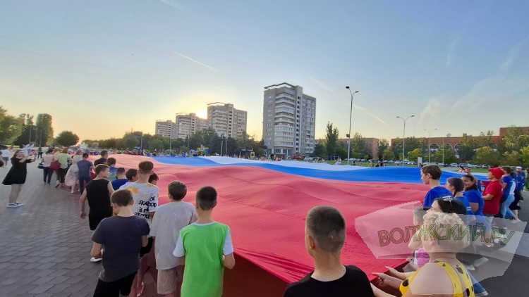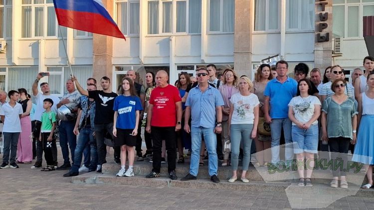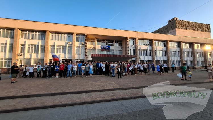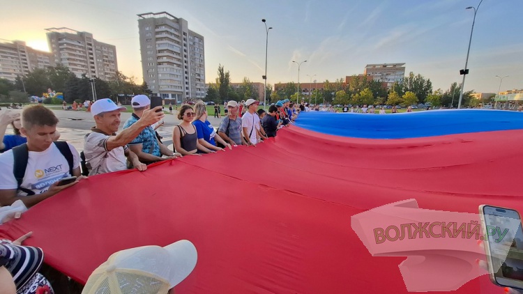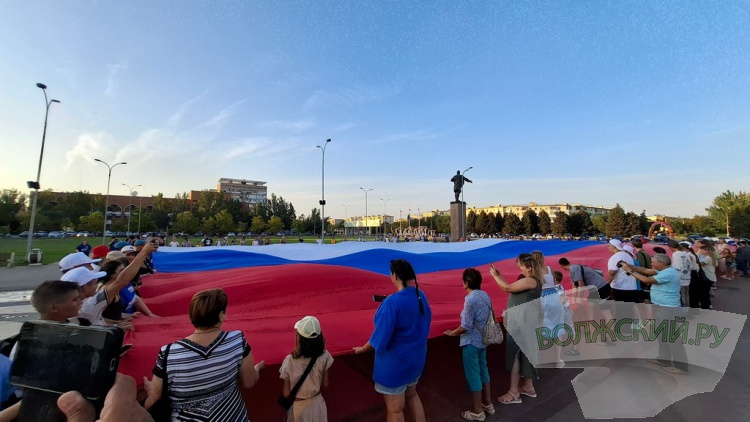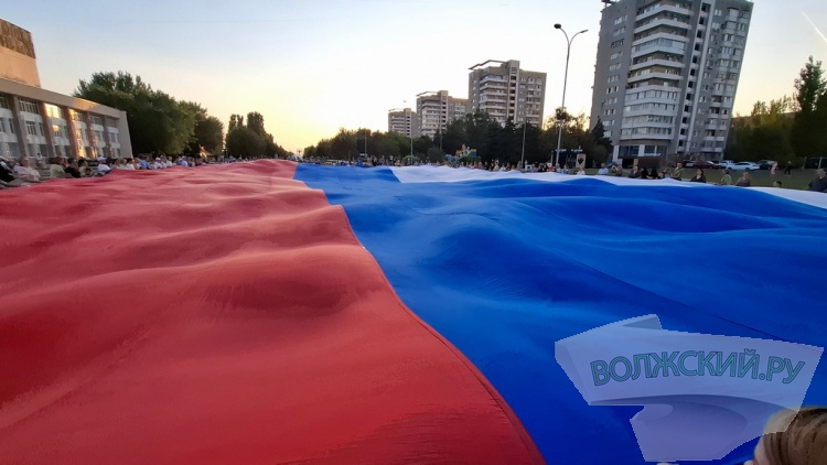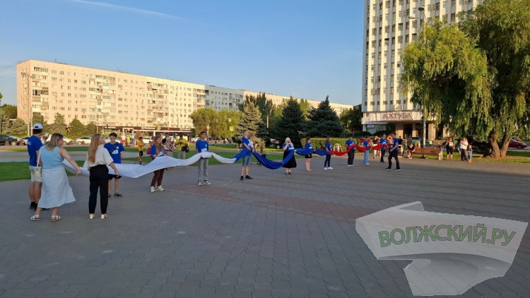 В мероприятии «Под одним флагом» приняли участие сотрудники администрации Волжского, депутатского корпуса, волонтеры и все неравнодушные волжане. На центральной площади города собрались несколько сотен человек.