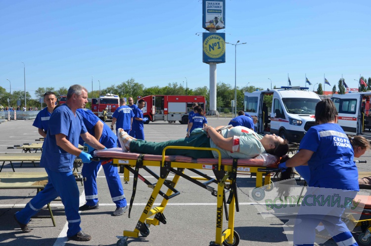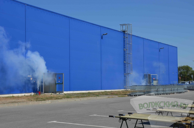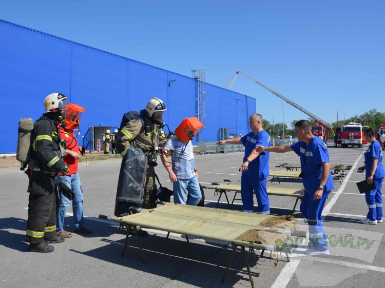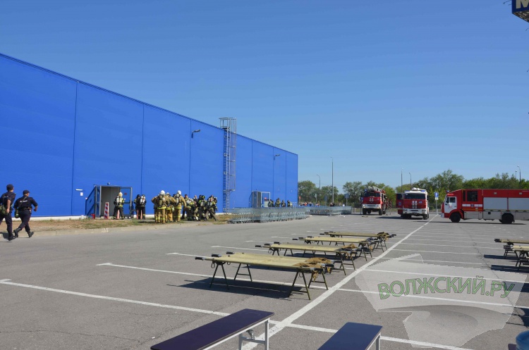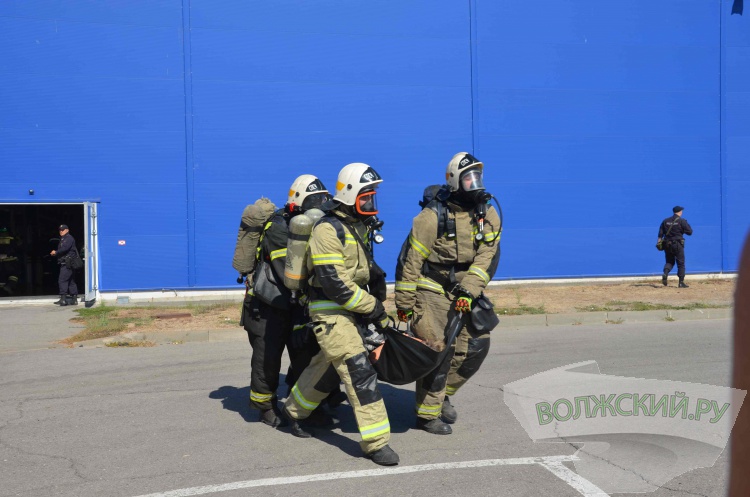 В Волжском мероприятие было самым масштабным – было задействовано 120 человек личного состава и 37 единиц техники. По легенде, из-за короткого замыкания электропроводки в здании торгового центра загорелся товар, огонь распространился на площади в 30м2, и в помещении уже стояло плотное задымление. На момент развития событий внутри находилось 34 человека, 16 из которых самостоятельно передвигаться не могли, а часть была заблокирована на складе.
