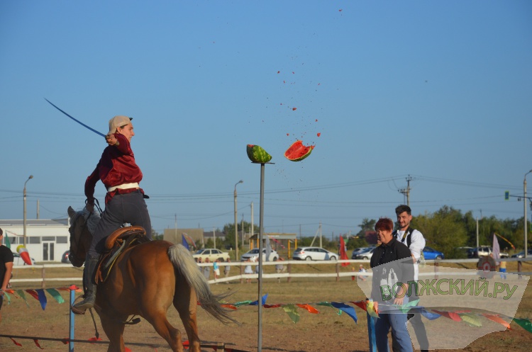 Самым зрелищным и долгожданным событием фестиваля стало выступление конно-спортивных клубов «Гермес» из Волжского и имени Бакланова из Суровикино. Наездники соскакивали с лошадей на ходу, ездили спиной вперёд, выполняли акробатические номера, на скорости разрубали знаменитой казачьей шашкой ветки, бутылки с водой и арбузы, прыгали через преграды, в том числе огненные