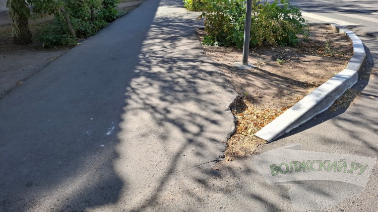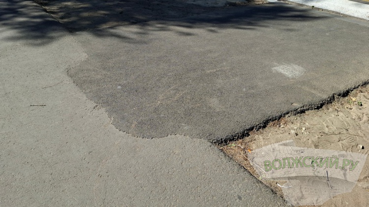 Пешеходная дорожка местами петляет. А около школы № 10 она успела провалиться. Провал засыпали щебнем и будут восстанавливать. Стыки наляпаны очень грубо.