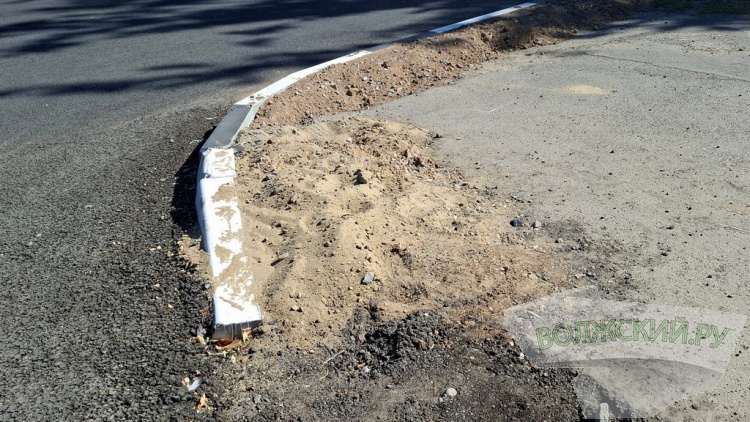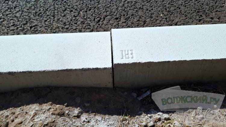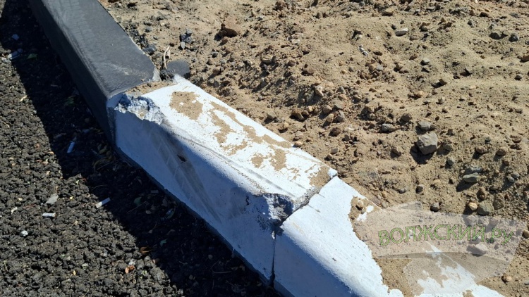 Любимые бордюры в сколах, местами криво уложены. В настоящее время подрядчики присыпают их грунтом.