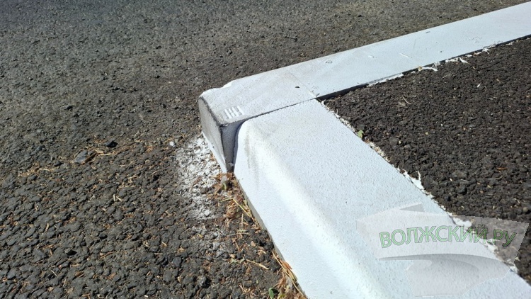 В целом, обновленная дорога выглядит хорошо. Чего не сказать о тротуарах, бордюрах, дорожных знаках и светофорах. Лучше всего об этом расскажут фотографии. Так, на бордюрах местами имеются сколы, которые рабочие закрасили краской.