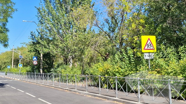 Следующий пункт – улица Рабоче-Крестьянская. Здесь отремонтировали проезжую часть и тротуары, установили знаки, мигающие светофоры и нанесли разметку. На дороге, ведущей к МФЦ, тротуар так зарос кустарником, что даже новенькая дорожка не спасает. Участок смотрится заброшенным и пугающим.
