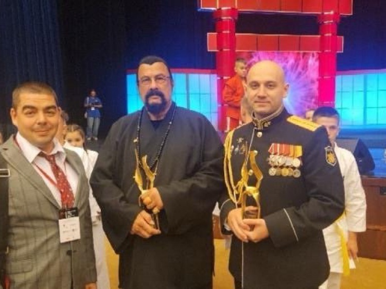 Как рассказали Волжский.ру в пресс-службе Волжской городской думы, одним из 12 награждённых стал волжанин Михаил Подшибякин – член региональной организации киокушинкай, ученик депутата Волжской городской думы и президента Волгоградской спортивной региональной общественной организации киокусинкай Александра Анохина. Ещё одним лауреатом стал мастер боевых искусств Стивен Сигал, с которым сфотографировались волжане.